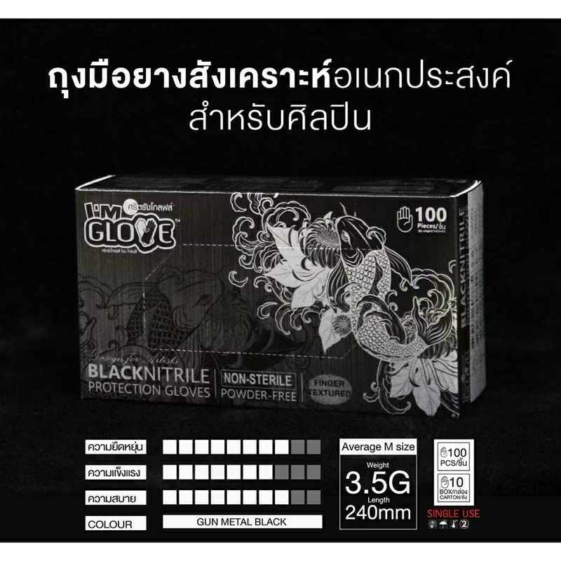 ถุงมือ ไนไตร ถุงมือยางไรแป้ง 100ชิ้น