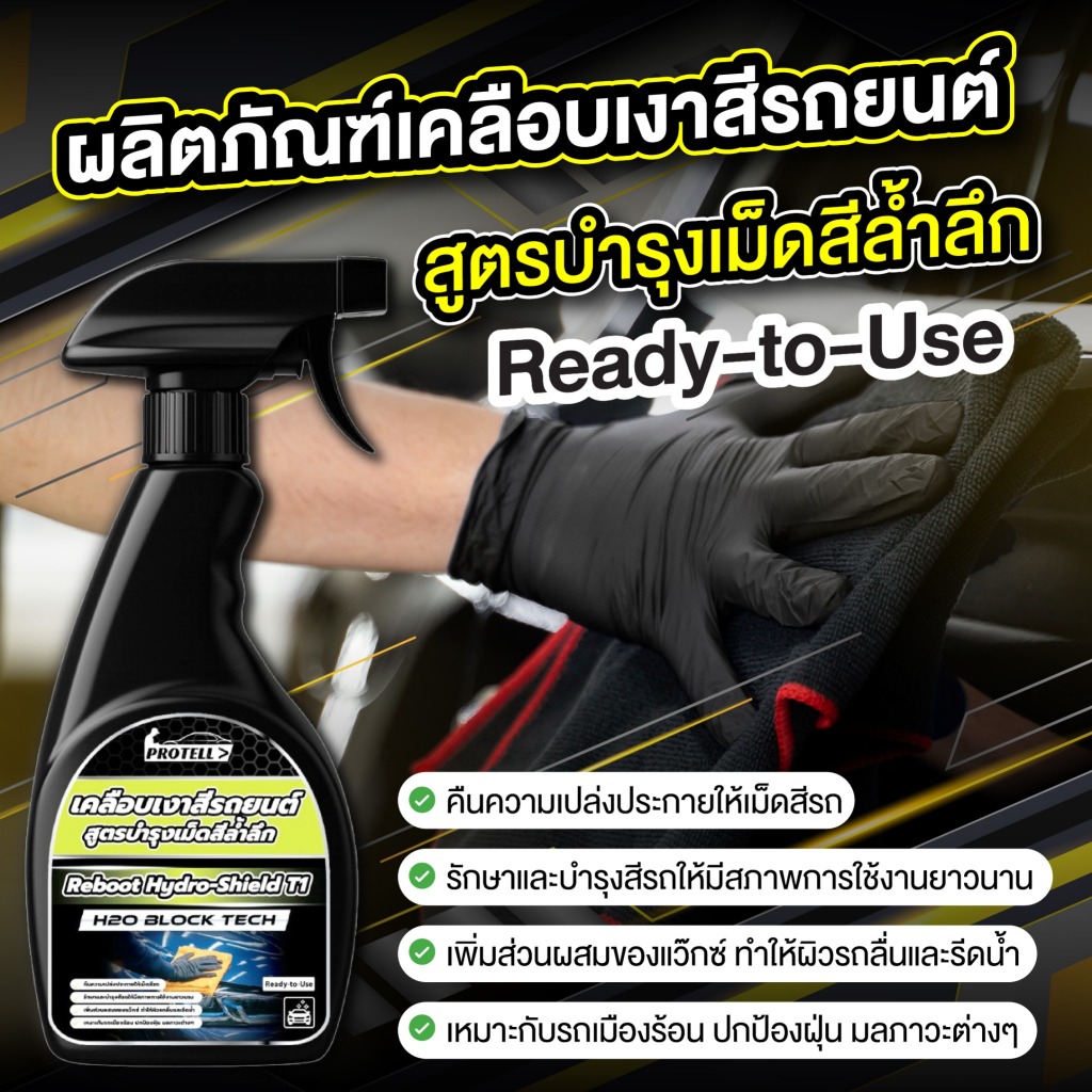 สเปรย์เคลือบสีเซรามิก เงาฉ่ำ ขนาด 500 ml ไล่น้ำแบบ hydrophobic สูตร H2O Block Tech ติดทนนาน