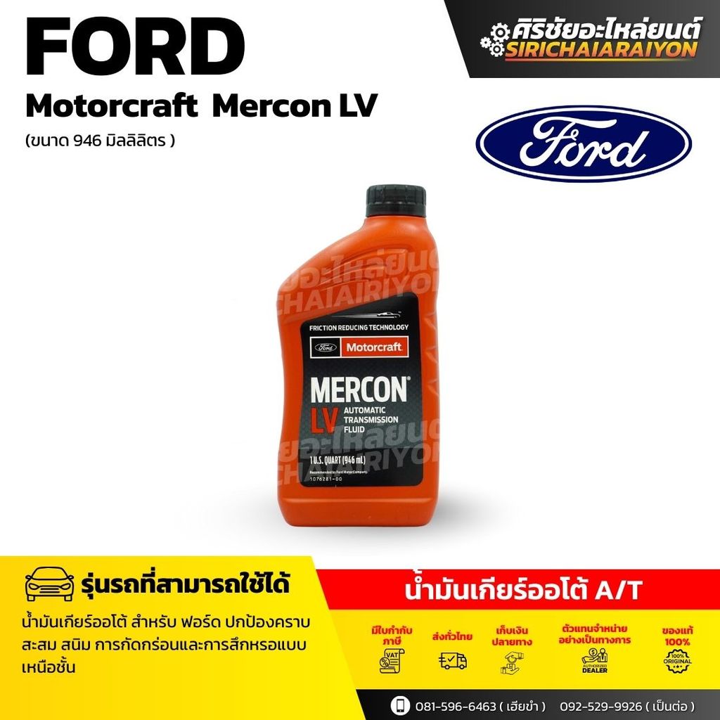 FORD MOTORCRAFT Mercon LV น้ำมันเกียร์ออโต้ (ขนาด 0.946ml.) แท้เบิกศูนย์