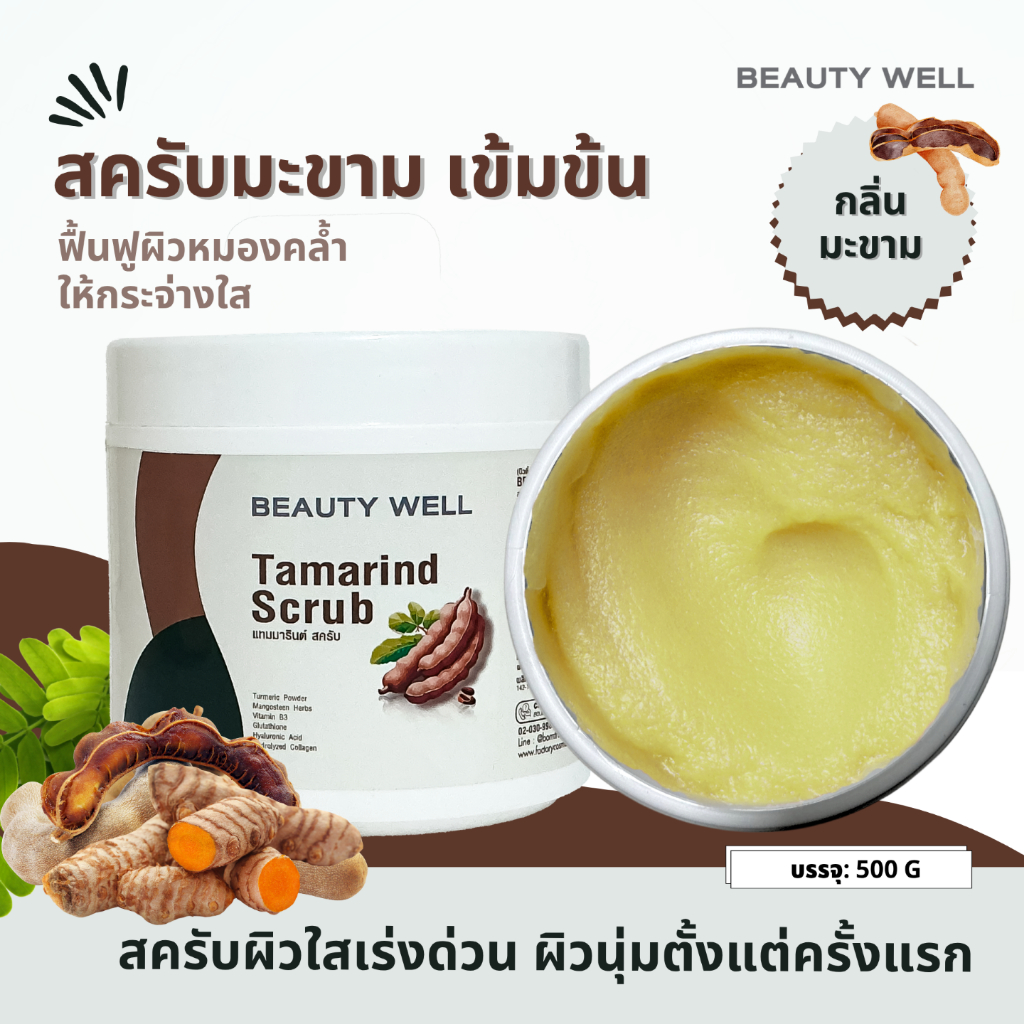 สครับมะขาม ขมิ้น สูตรเข้มข้น Beauty Well Tamarind Scrub 500g ฟื้นฟู ลดรอยคล้ำ ผิวหมองคล้ำ กระจ่างใส