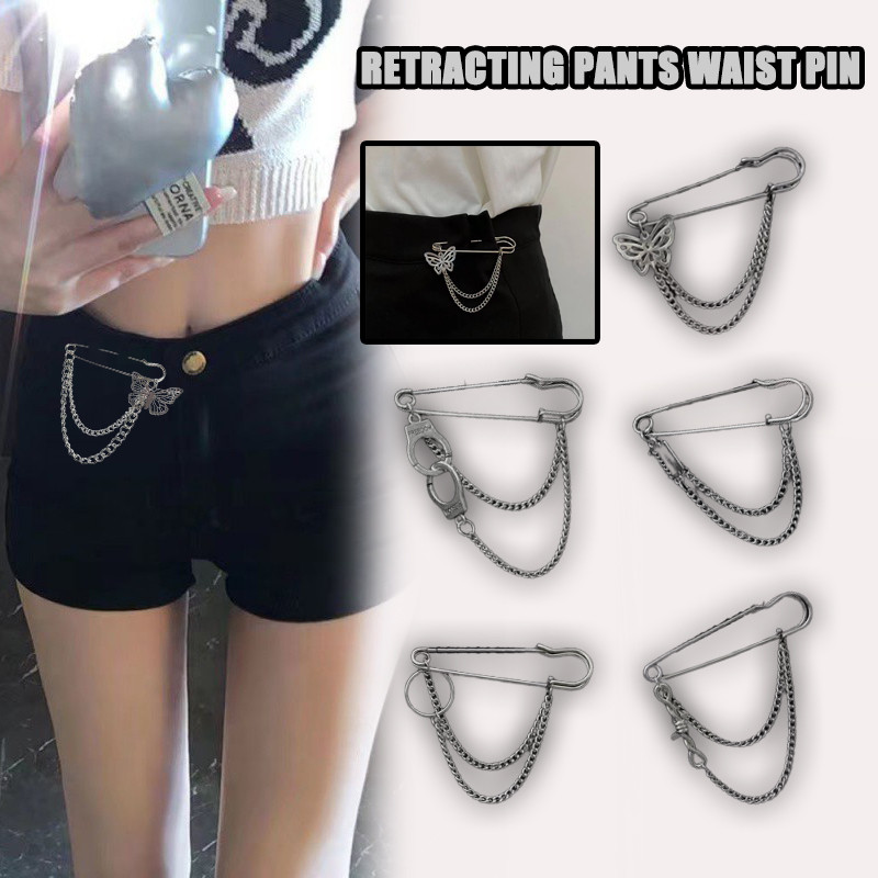 SYUANUNNY เวอร์ชั่นเกาหลี Anti-exposure เอว-retracting Pin Chain กางเกงเอวขนาดใหญ่ผีเสื้อขนาดเล็กเข็มกลัดส่วนบุคคล Pin เสื้อผ้าอุปกรณ์เสริม