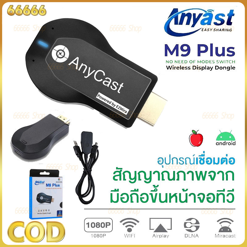 COD ของแท้ HDTV Anycast M9 plus Anycastปื hdmi wifi Display HD อุปกรณ์ร่วมหน้าจอไร้สาย ต่อมือถือไปทีวี รองรับ Android