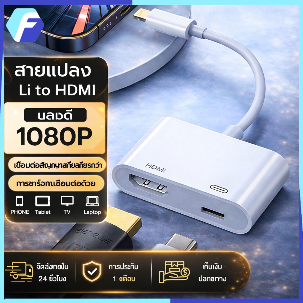 【COD】สายแปลง Li to HDMI 1080P HDMI Adapter สําหรับ โทรศัพท์มือถือ/แท็บเล็ต โอนสาย เชื่อมโยง