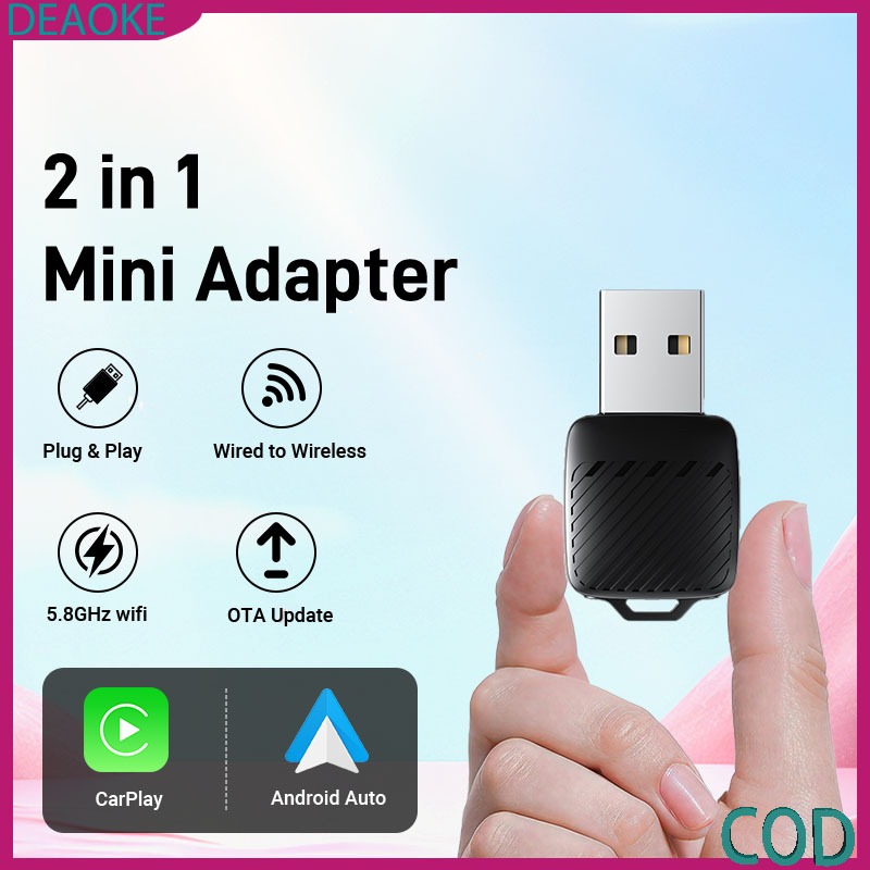 อะแดปเตอร์ไร้สาย CarPlay Android Auto มินิสมาร์ทกล่อง USB Dongle Plug and Play WiFi 5G Bluetooth 5.0 เชื่อมต่อเร็ว รองรั
