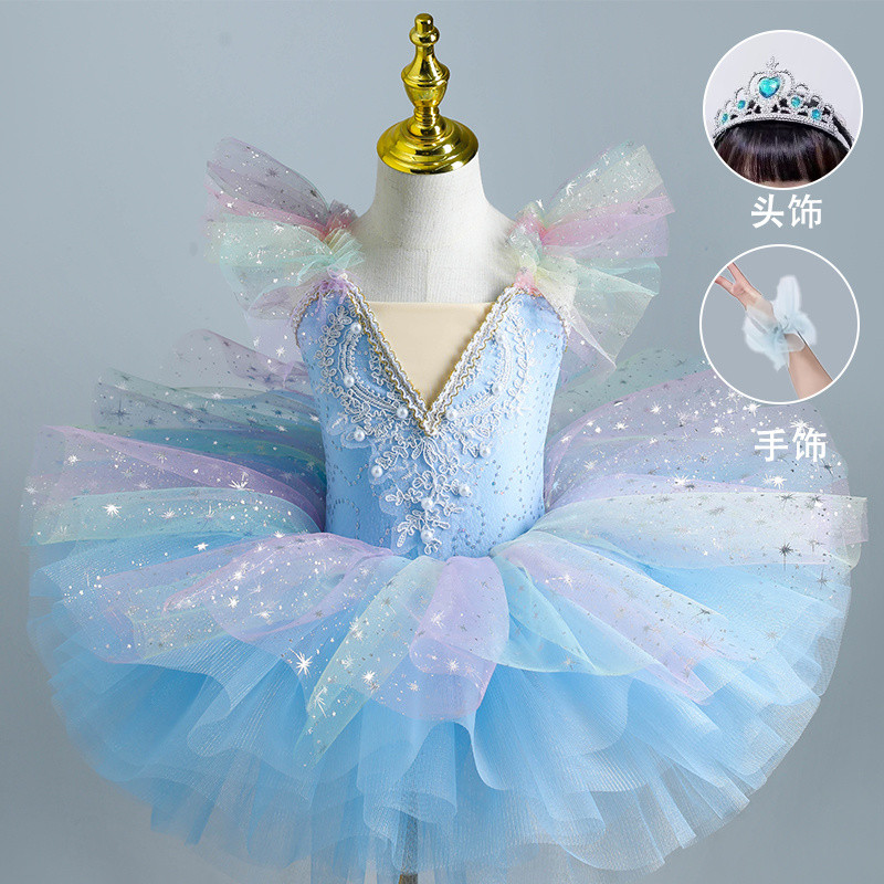 ชุดบัลเล่ต์เด็กหญิงรูปแบบกระโปรงฟูฟ่อง ใช้ประกอบการแสดงชุดหงส์น้อย กระโปรงผ้าโปร่งสไตล์เจ้าหญิง เหมาะสำหรับเด็กเล็ก