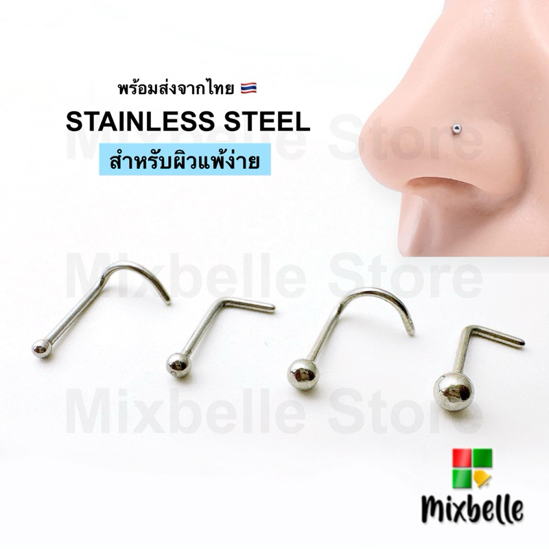 จิวจมูก สแตนเลส 316L สำหรับผิวแพ้ง่าย ไม่ลอก ไม่ดำ [PNS-B]