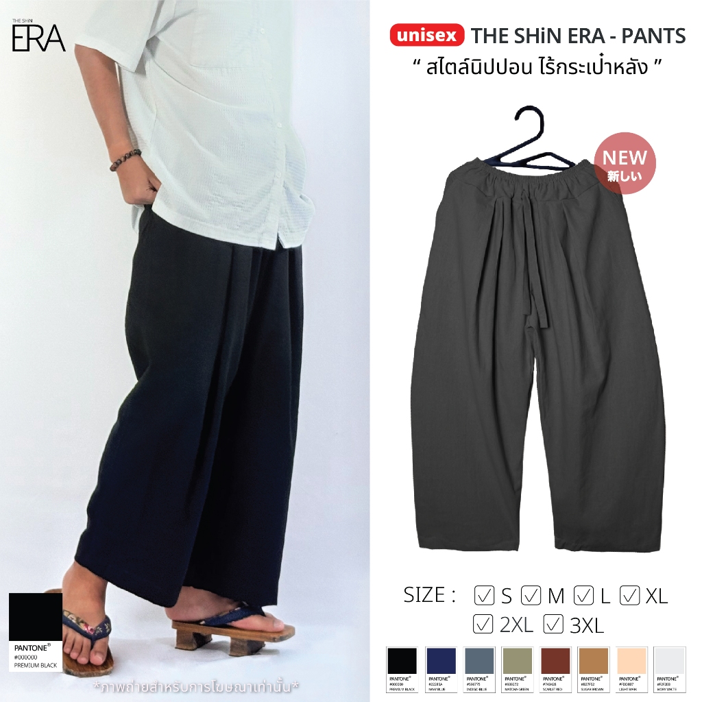 กางเกงนิปปอนบอย ไม่มีกระเป๋าหลัง ขากว้างเนื้อผ้าฝ้าย ไซส์ S M L XL 2XL 3XL