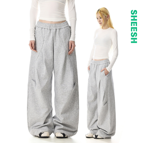 SHEESH กางเกงวอร์มขายาวลําลอง เอวยางยืด กางเกงขายาว สไตล์เกาหลี สีพื้น สีดํา สีเทา ลำลองทรงหลวม M-3XL