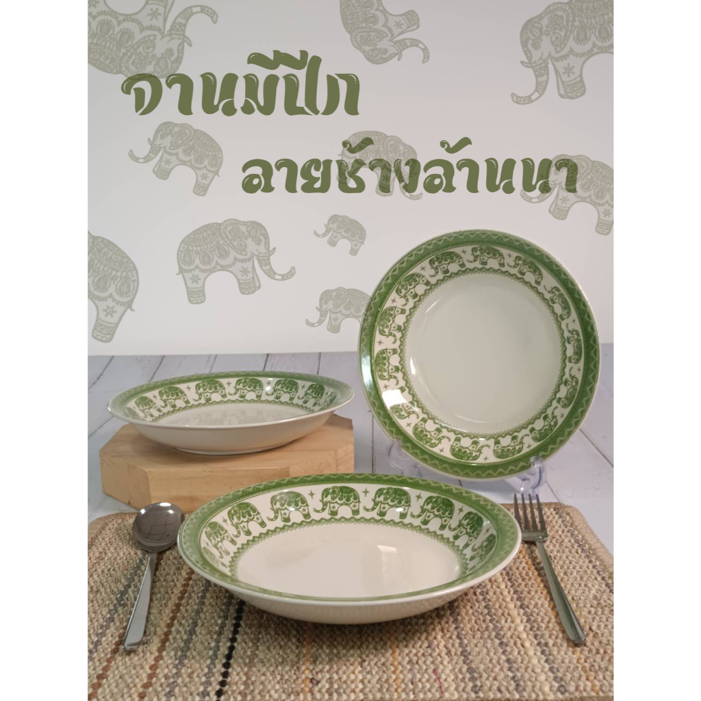 จานเซรามิก จานมีปีก จานลายช้างล้านนา ขนาด 8.75 นิ้ว (เข้าไมโครเวฟได้)