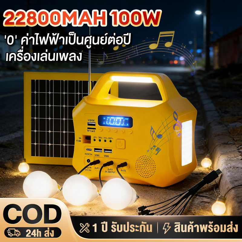 Power Station พลังงานแสงอาทิตย์ แหล่งจ่ายไฟ แบบพกพา ลำโพงในตัว สามารถเล่นเพลงได้ สามารถให้แสงสว่างได้ ของแท้100%