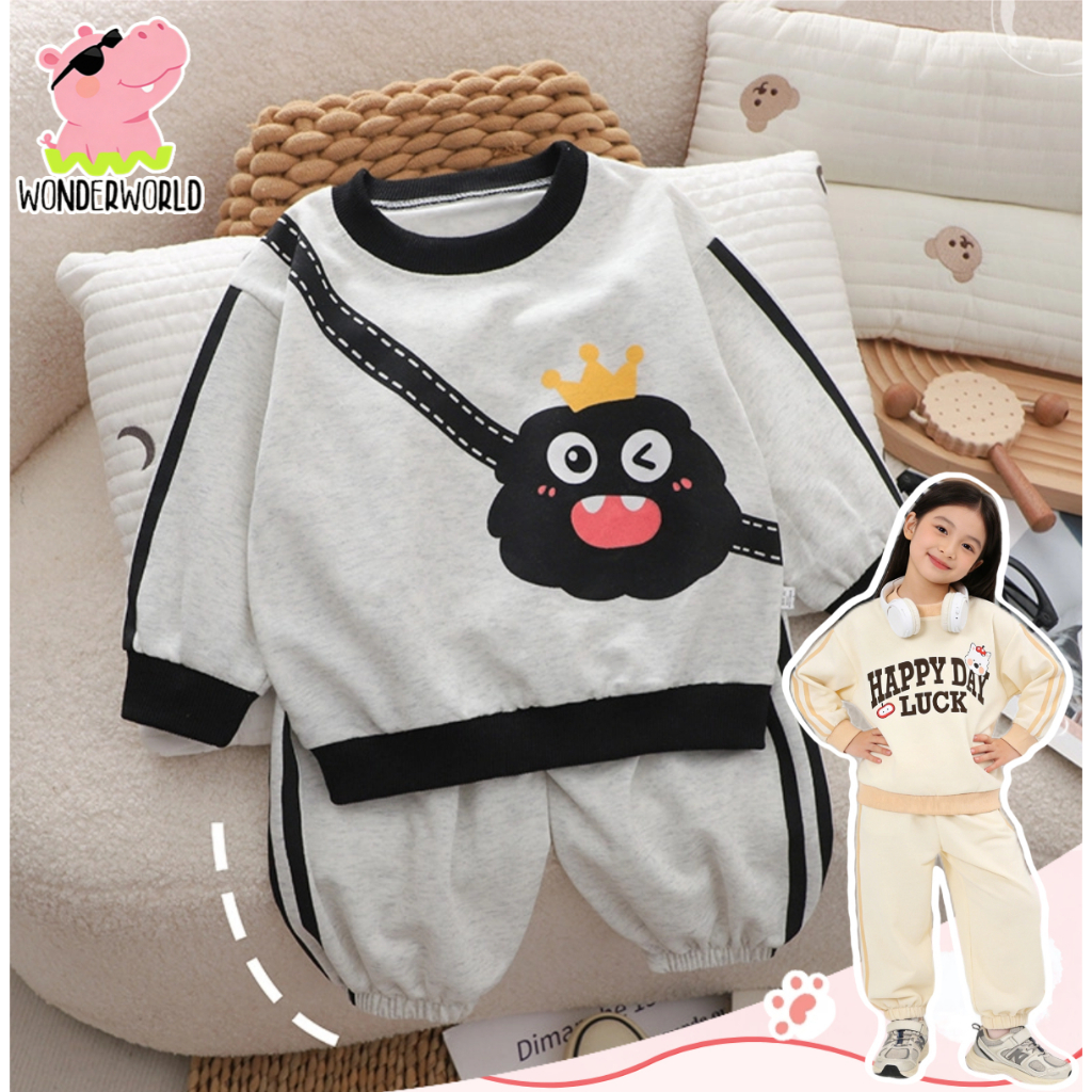 ชุดลำลองเด็ก ชุดสองชิ้นเด็กลำลอง ลายน่ารัก ทรงหลวม สไตล์เกาหลี คอกลม