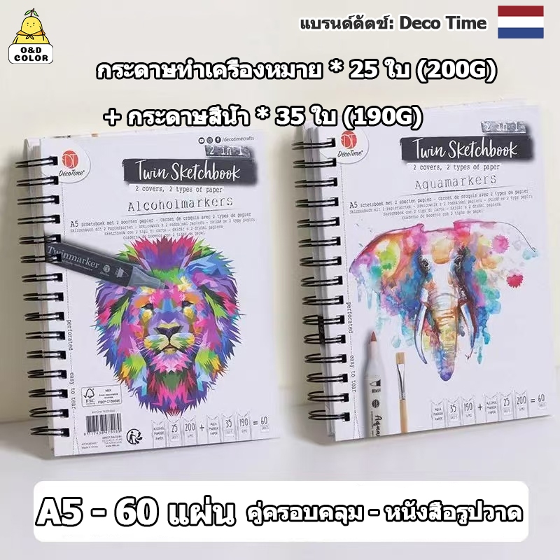 Deco Time's หนังสือสเก็ตช์ A5/A4 60 ใบ - กระดาษทำเครื่องหมาย 200 กรัม+กระดาษสีน้ำ 190 กรัม Marker Watercolor Book