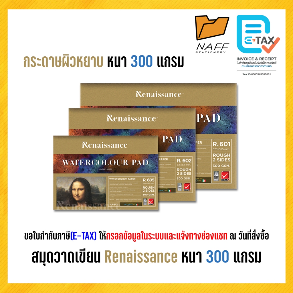 สมุดวาดเขียน เรนาซอง Renaissance ชนิดผิวหยาบ หนา 300 แกรม เล่มทอง