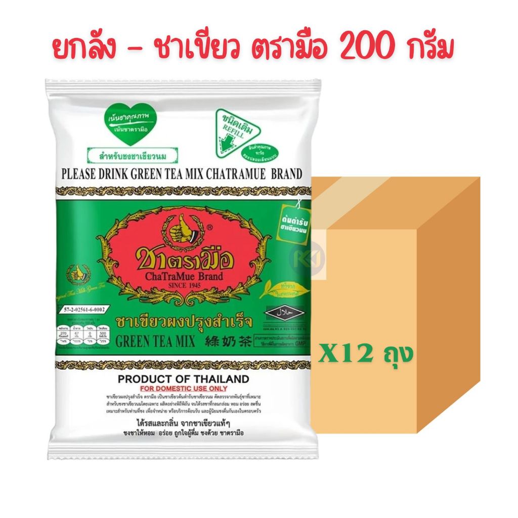 ยกลัง - ตรามือ ชาเขียวผงปรุงสำเร็จ ชนิดถุง 200 ก.
