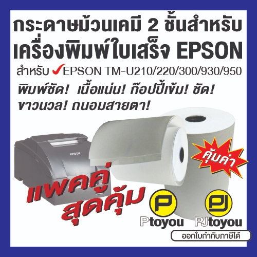 กระดาษม้วนเคมี 2 ชั้น สำหรับเครื่องพิมพ์ใบเสร็จ EPSON แพคคู่