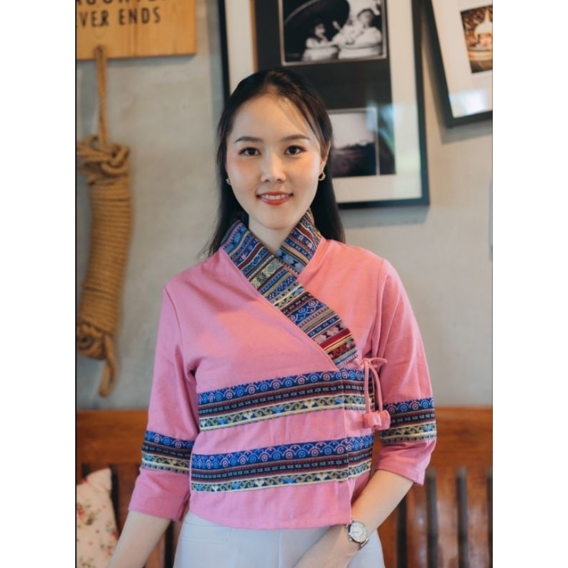 เสื้อคอจีนผู้หญิง ไทเขิน กระดุมจีน ทรงสวย สไตล์ล้านนา ใส่สบาย อก 38-44 นิ้ว