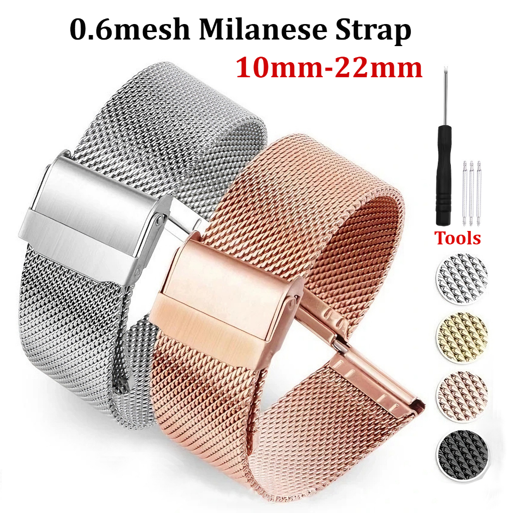 8มิลลิเมตร/10มิลลิเมตร/12มิลลิเมตร/14มิลลิเมตร/15มิลลิเมตร/16มิลลิเมตร/20มิลลิเมตร/24สแตนเลสสายนาฬิกาตรงจบสร้อยข้อมือตาข่ายหัวเข็มขัดนาฬิกาวง5สี เปลือก