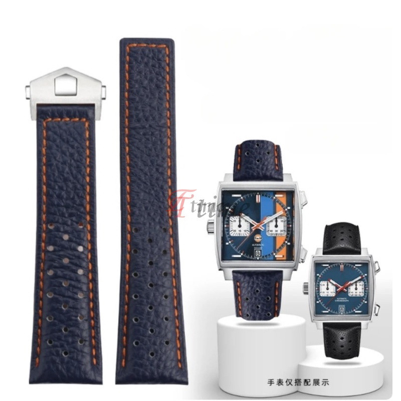 สายนาฬิกาข้อมือ หนังวัวแท้ แบบนิ่ม แต่งหัวเข็มขัดพับได้ ระบายอากาศได้ดี ขนาด 22 มม. สําหรับ Heuer Monaco Calila