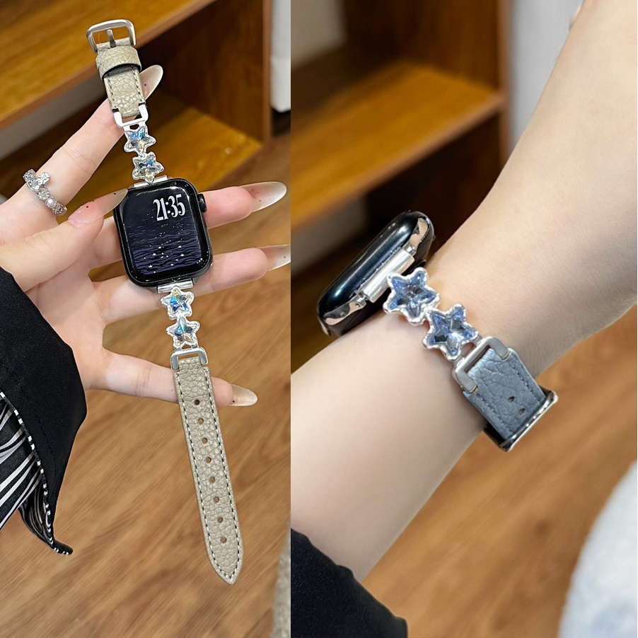 สายหนัง Star สําหรับสายนาฬิกา A-pple Watch Series11 10 Series9 Series8 7654321 SE2 สายรัดข้อมือ Ultra iWatch ขนาด 49 มม. 41 มม. 45 มม. 40 มม. 44 มม. 38 มม. 42 มม. i สายนาฬิกา